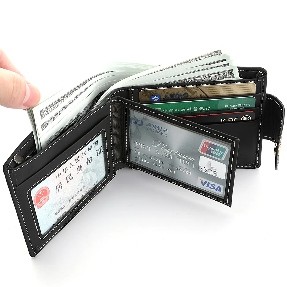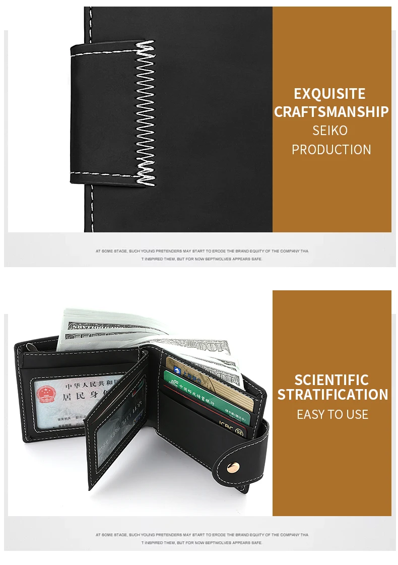 Práctico y funcional: Con un diseño de dos pliegues y modo de apertura con botón, esta cartera es práctica y segura. Su estructura interna incluye un gran compartimento para boletos, ranura para fotografías, cremallera, y ranura para tarjetas, asegurando que puedas llevar todo lo que necesitas con estilo.