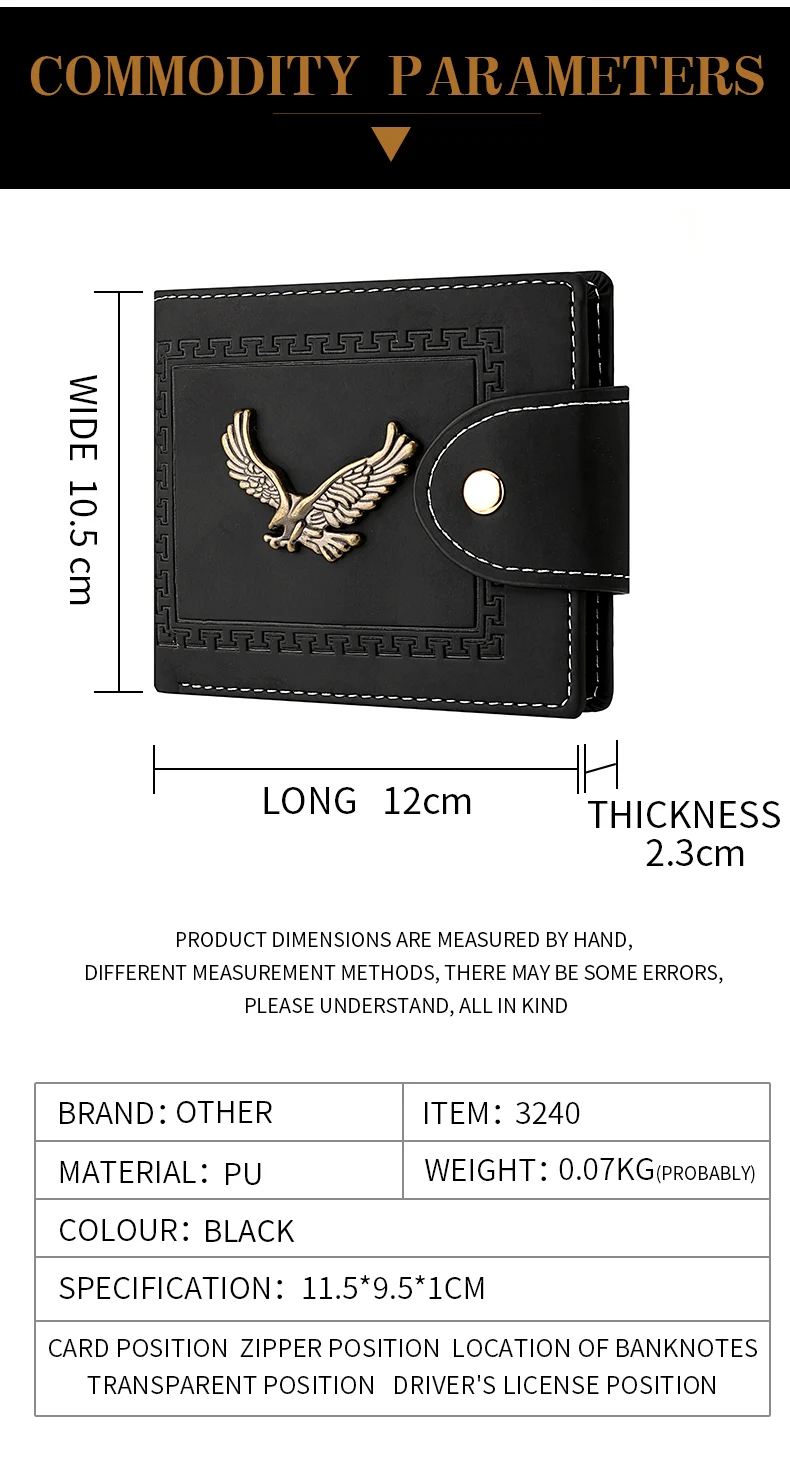 Diseño de águila de metal: Siente la poderosa presencia de nuestra cartera con el emblemático diseño de águila de metal, símbolo de fuerza, libertad y liderazgo, perfecto para el hombre que quiere destacar.