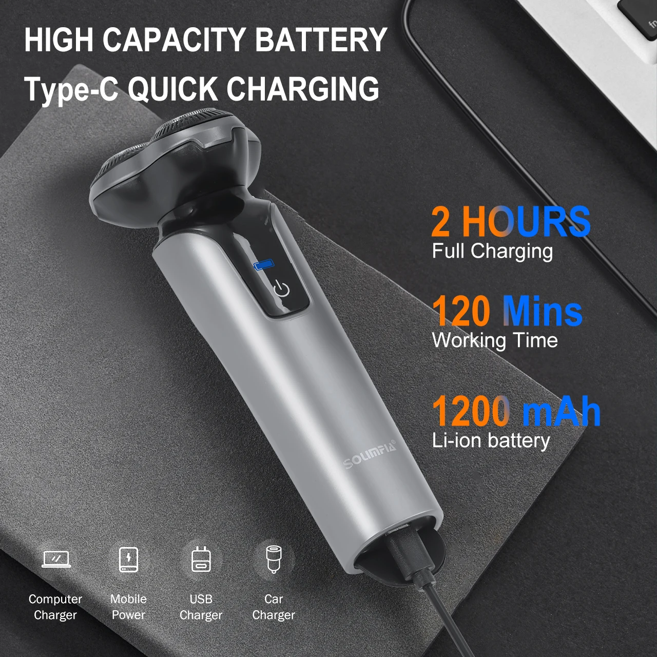 Alimentado por una batería de litio de alta capacidad, ofrece 60 minutos de afeitado continuo con una sola carga de 1 hora.¿Necesita un retoque rápido?Una carga de emergencia de 5 minutos proporciona 5 minutos de uso, perfecta para mañanas ocupadas.
