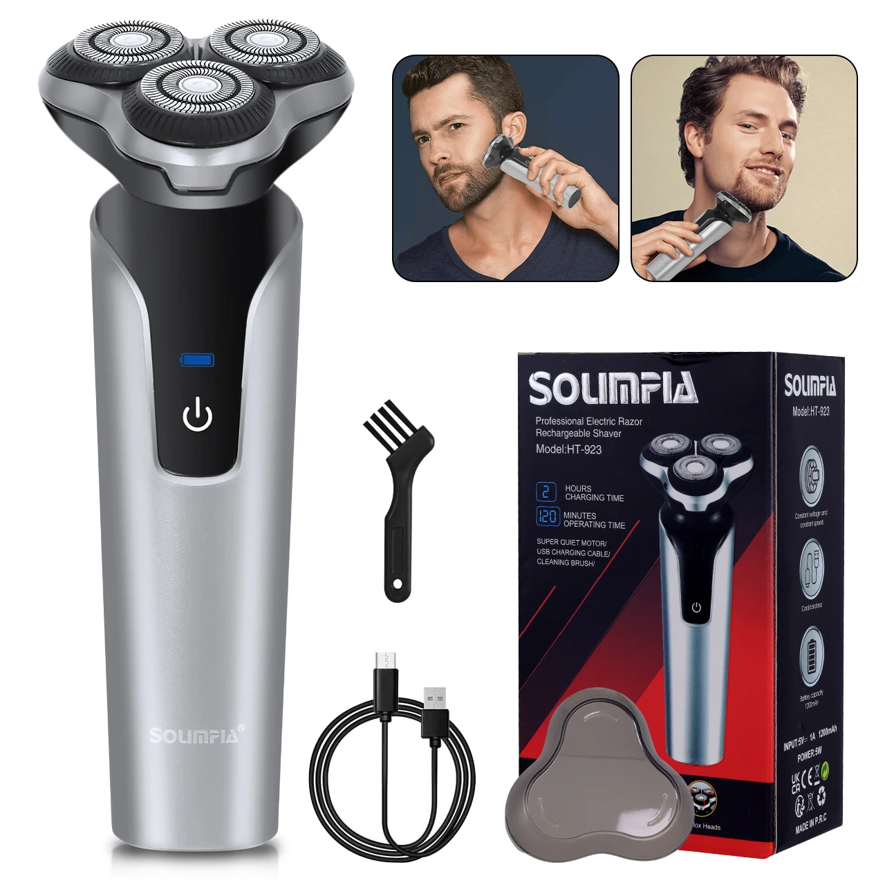 Hatteker-Afeitadora eléctrica portátil de 3 hojas para hombre, maquinilla de afeitar profesional para uso doméstico con mango ergonómico, rendimiento ultrasuave