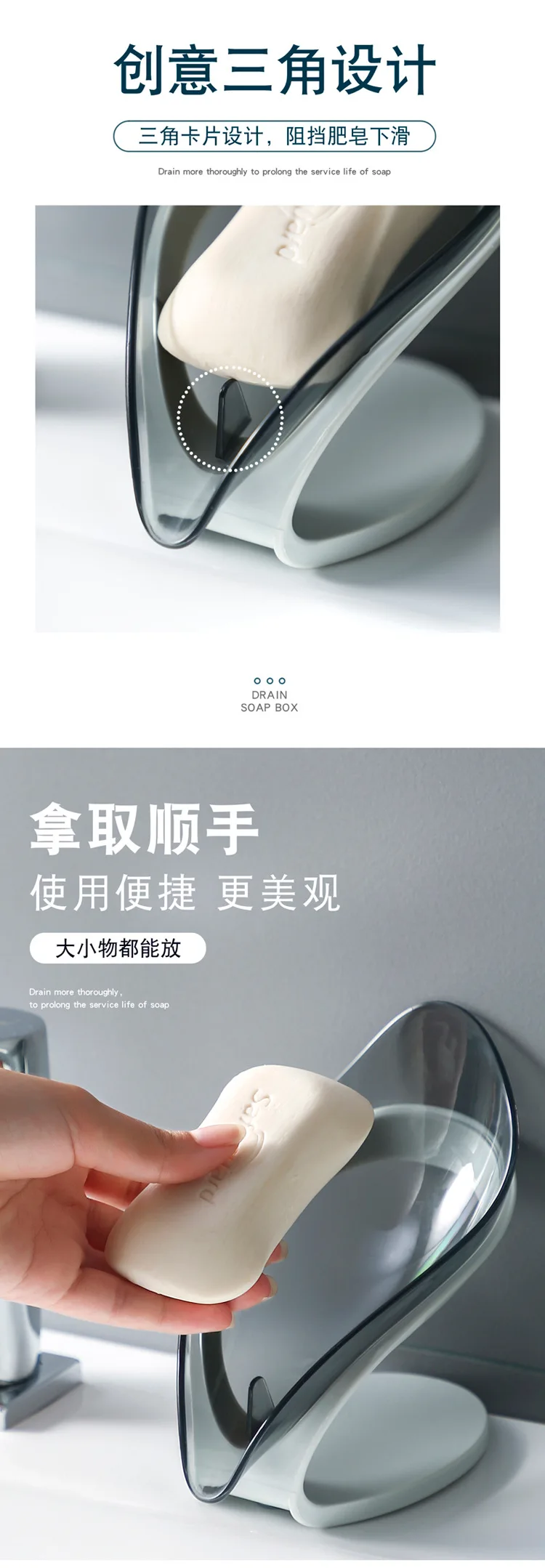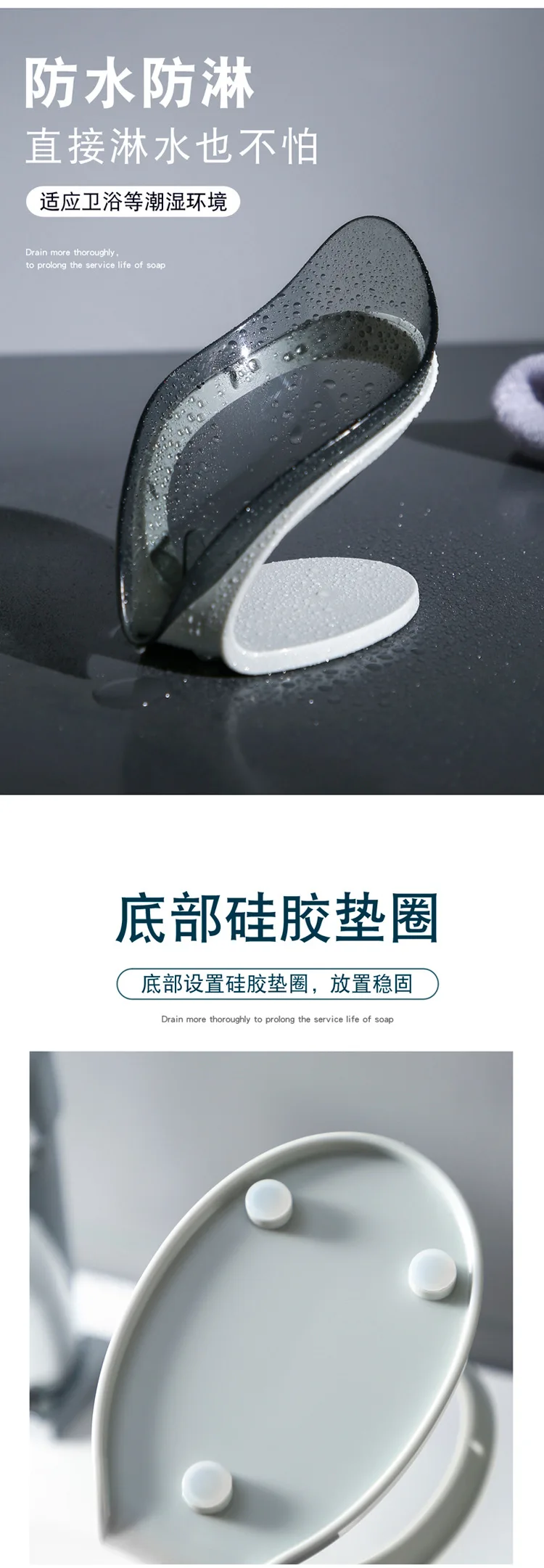 • Autosucción: La base con fuerte succión garantiza que la jabonera se mantenga firme, eliminando cualquier preocupación sobre caídas.